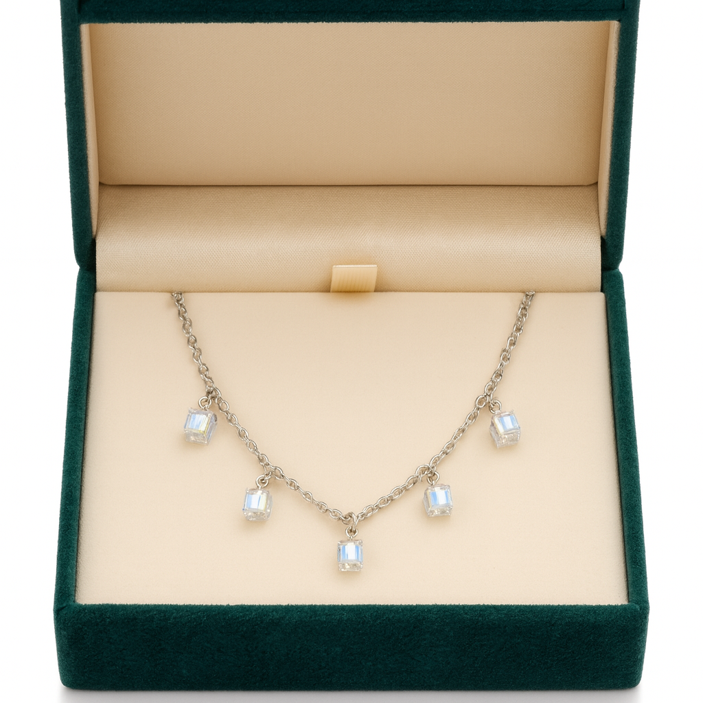 This 925 silver necklace features three stunning crystal cube charms that shimmer beautifully under any light, giving your look a subtle yet luxurious glow. Designed for elegance and comfort, it complements both casual and festive outfits effortlessly. Crafted from high-quality sterling silver, it’s hypoallergenic, tarnish-resistant, and lightweight for everyday wear. Perfect for parties, dinners, or gifting, this delicate chain necklace adds timeless sophistication and modern charm to your jewelry collection. Ideal as a thoughtful present for birthdays, anniversaries, or special celebrations.