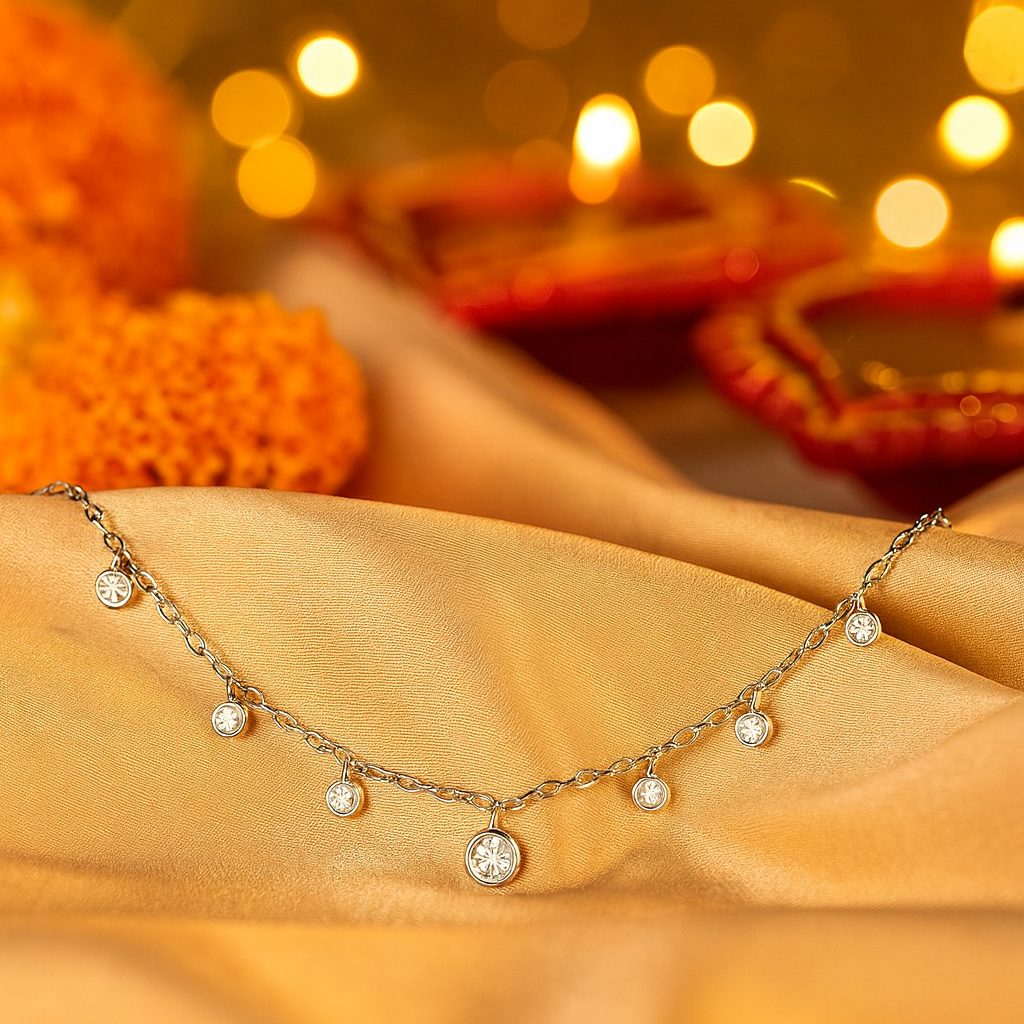 Add a sparkling touch to your everyday look with this elegant 925 silver dangling CZ pendant necklace. The necklace features multiple bezel-set cubic zirconia charms delicately hanging from a sleek silver chain, creating a refined layered effect. Each stone shimmers beautifully with every movement, giving a graceful, youthful charm. Crafted from premium sterling silver with an anti-tarnish rhodium finish, this necklace is lightweight, hypoallergenic, and perfect for long wear. Ideal for parties, date nights, or gifting, it’s the ultimate blend of minimalism and modern elegance.