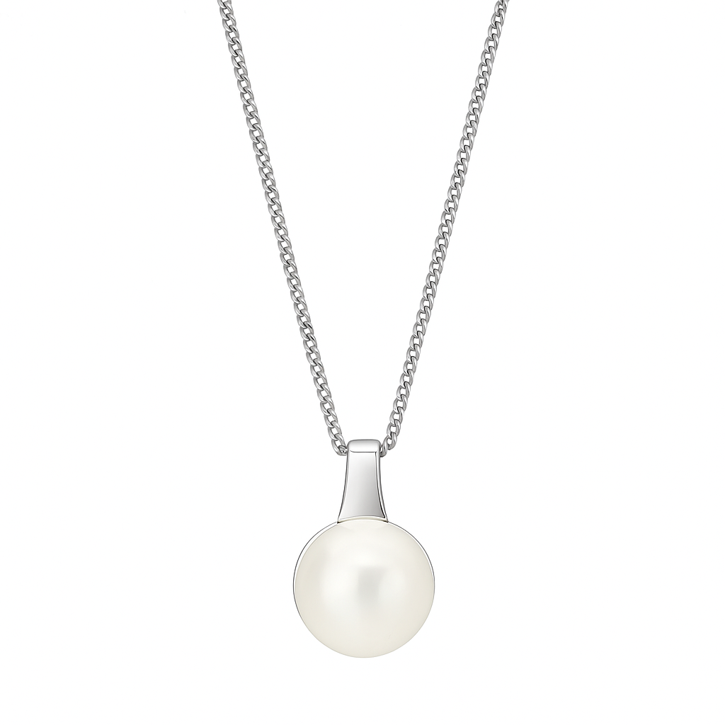 This classic pearl pendant necklace brings effortless elegance to any look. The smooth, luminous pearl offers a soft glow that beautifully complements the polished white-gold finish, creating a timeless and refined style. Designed for everyday comfort, it feels lightweight on the neck and pairs perfectly with casual outfits as well as formal attire. A symbol of purity and grace, this necklace makes a thoughtful gift for women and girls who appreciate simple, sophisticated jewellery.