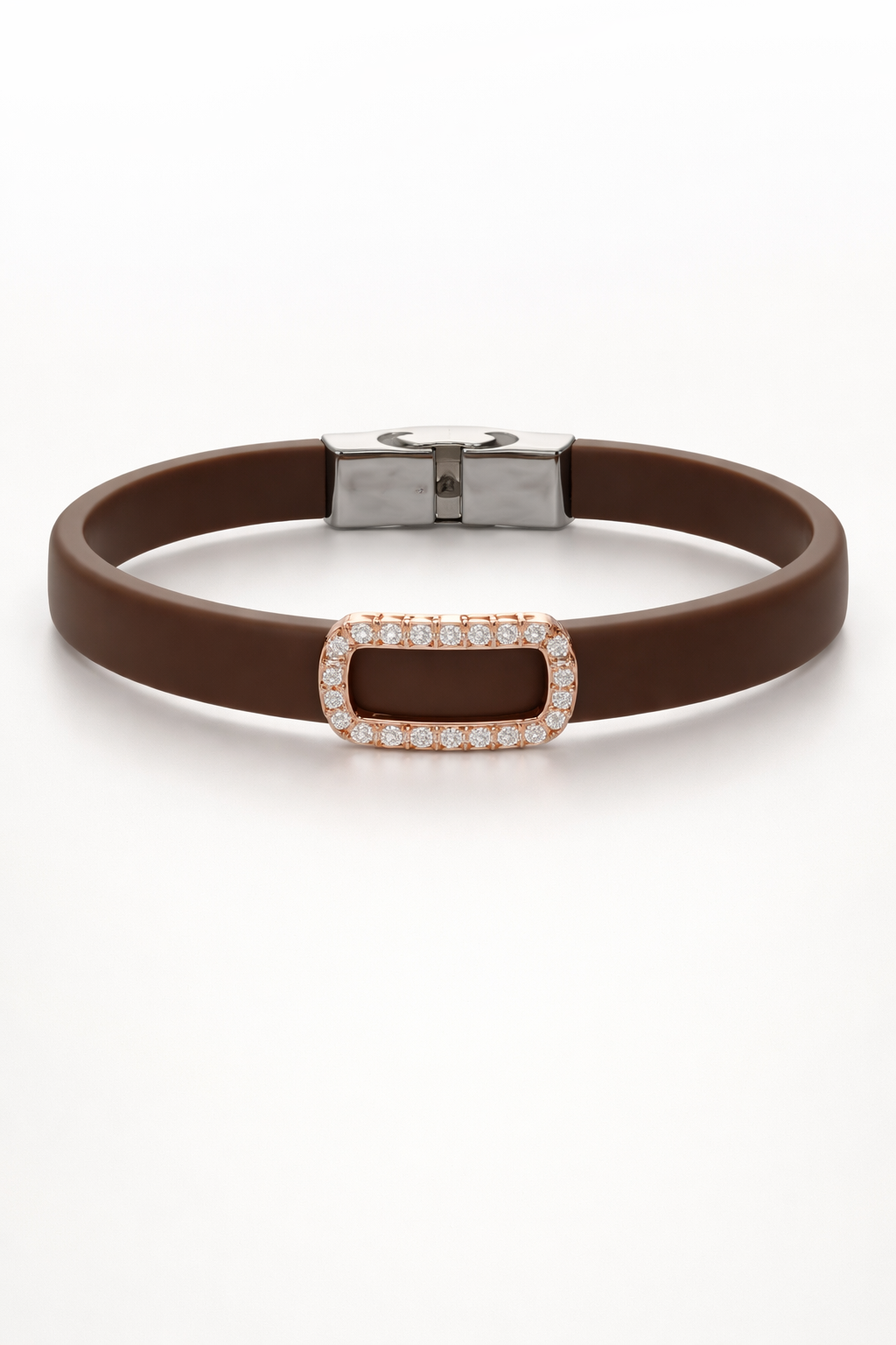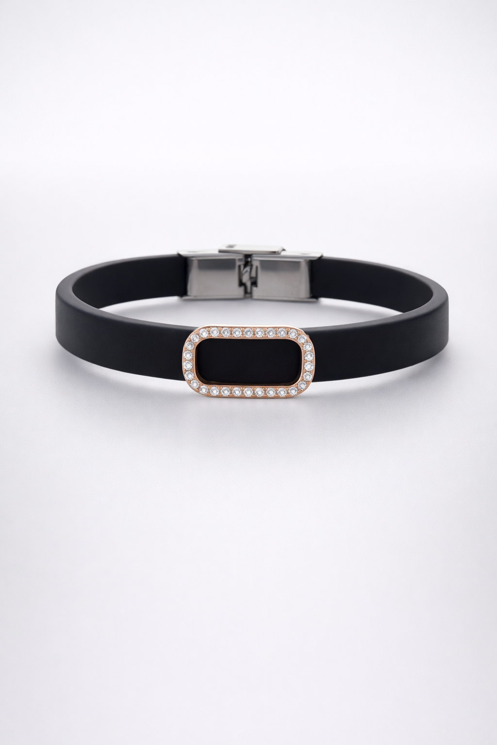 Elevate your everyday elegance with this sophisticated black silicone bracelet, expertly crafted to balance modern comfort with timeless style. The sleek black silicone band provides a lightweight, durable foundation perfect for daily wear, while the rose gold pave diamond border adds a luxurious finishing touch that catches light beautifully. The carefully set diamonds create a refined sparkle without overwhelming the design, making this piece versatile enough for casual occasions yet polished enough for evening events. The silicone construction ensures flexibility and resilience, adapting to your wrist for all-day comfort. Rose gold's warm undertones complement virtually any skin tone and coordinate seamlessly with both silver and gold jewelry collections. Whether you're seeking a statement piece that whispers rather than shouts, or a reliable accessory that transitions effortlessly from office to dinner, this bracelet delivers understated sophistication. An investment in quality craftsmanship that rewards you with enduring style and wearability.