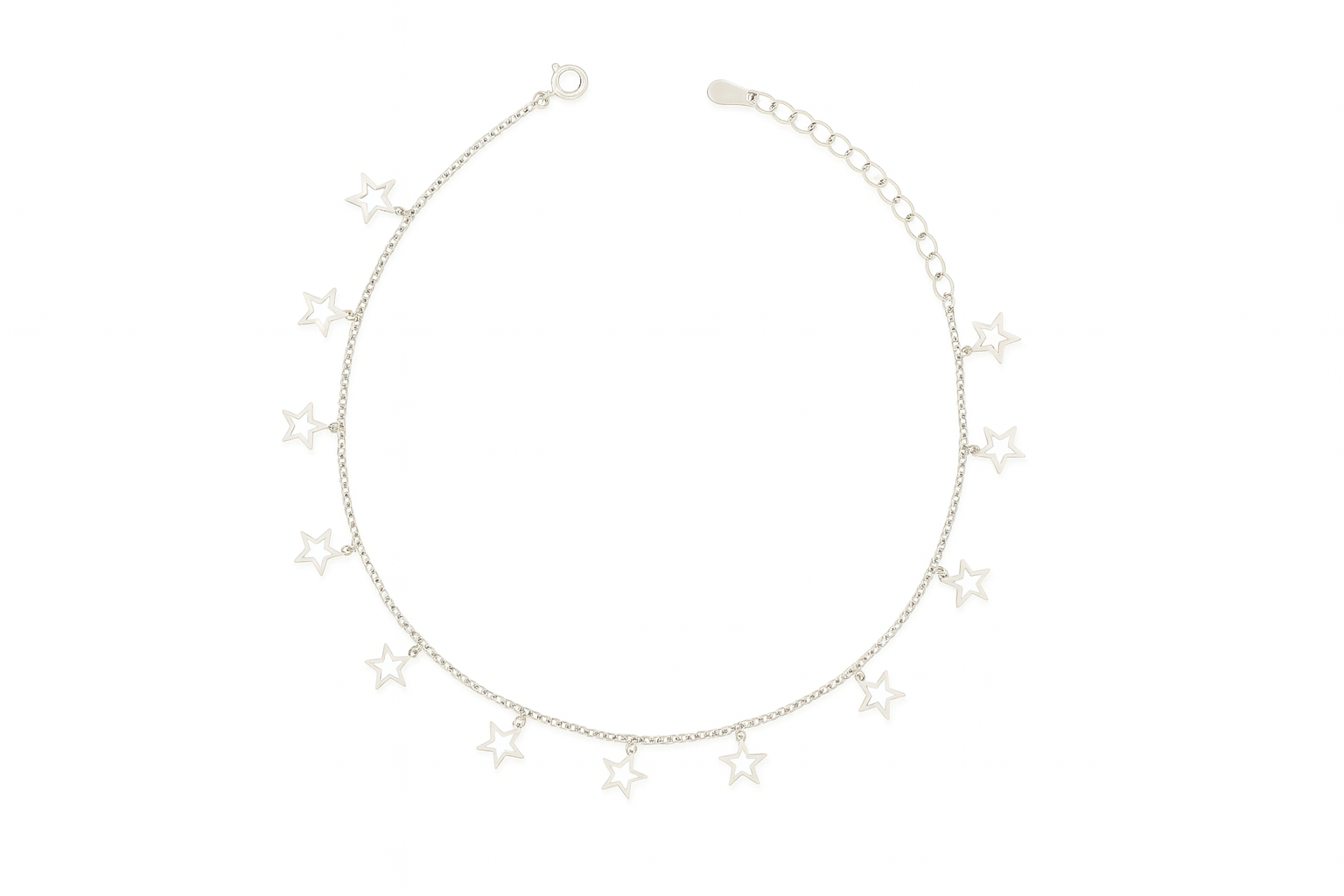 This elegant silver anklet features delicate star-shaped charms arranged beautifully along a fine chain, giving it a dreamy celestial look perfect for everyday wear. Lightweight and comfortable, it suits women and girls who love minimal yet stylish accessories. The adjustable extension allows a perfect fit, making it ideal for daily outfits, office wear, parties or gifting. Crafted with a clean, polished finish, it adds a subtle sparkle to your ankle for a chic modern style.