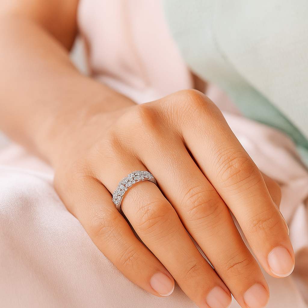 925 Silver Dual Row Baguette & Round Zircon Band Ring for Women – Elegant Everyday & Party Wear