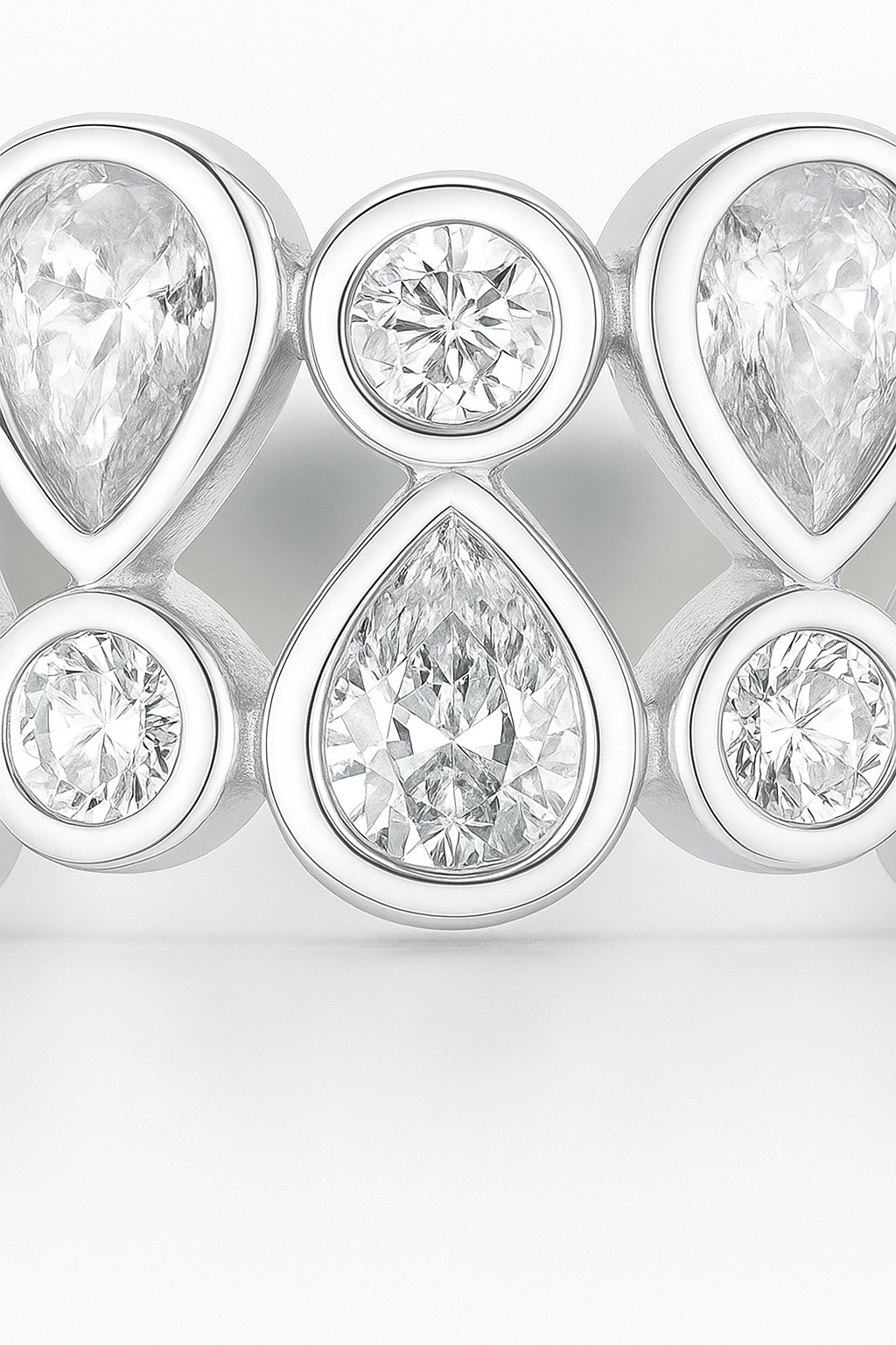 Elevate your style with this luxurious 925 silver designer zircon ring, crafted to perfection with an elegant mix of pear-shaped and round-cut stones. The unique cluster pattern radiates brilliance and gives the ring a modern yet timeless appeal. Its wide band design ensures a comfortable fit while adding a bold statement to your look. Ideal for parties, weddings, and festive occasions, this ring pairs beautifully with both western and traditional outfits. Made from premium sterling silver, it offers long-lasting shine, comfort, and durability — a perfect choice for women who love statement jewelry.