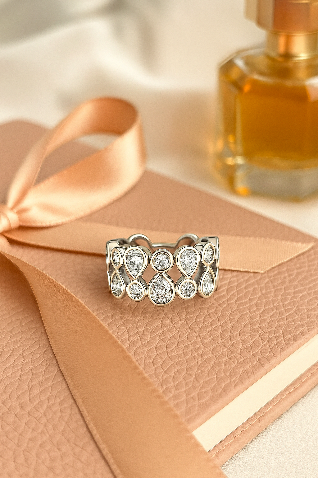 • Unique cluster design with pear & round zircon stones • Crafted from pure 925 sterling silver with smooth polish • Wide band design offering elegant and comfortable fit • Perfect for festive, wedding & statement party looks