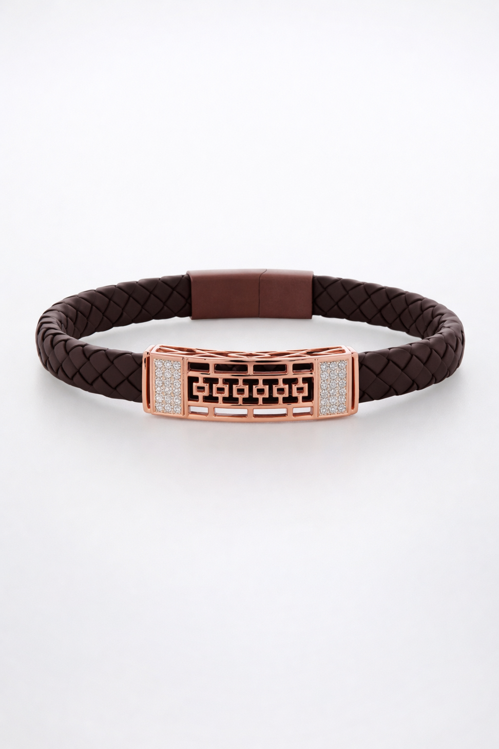 Luxury Braided Brown Bracelet with Rose Gold Geometric Diamond Center