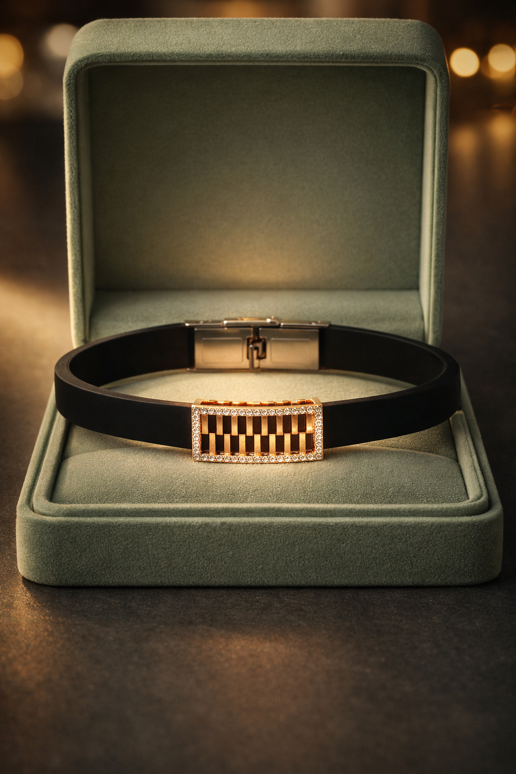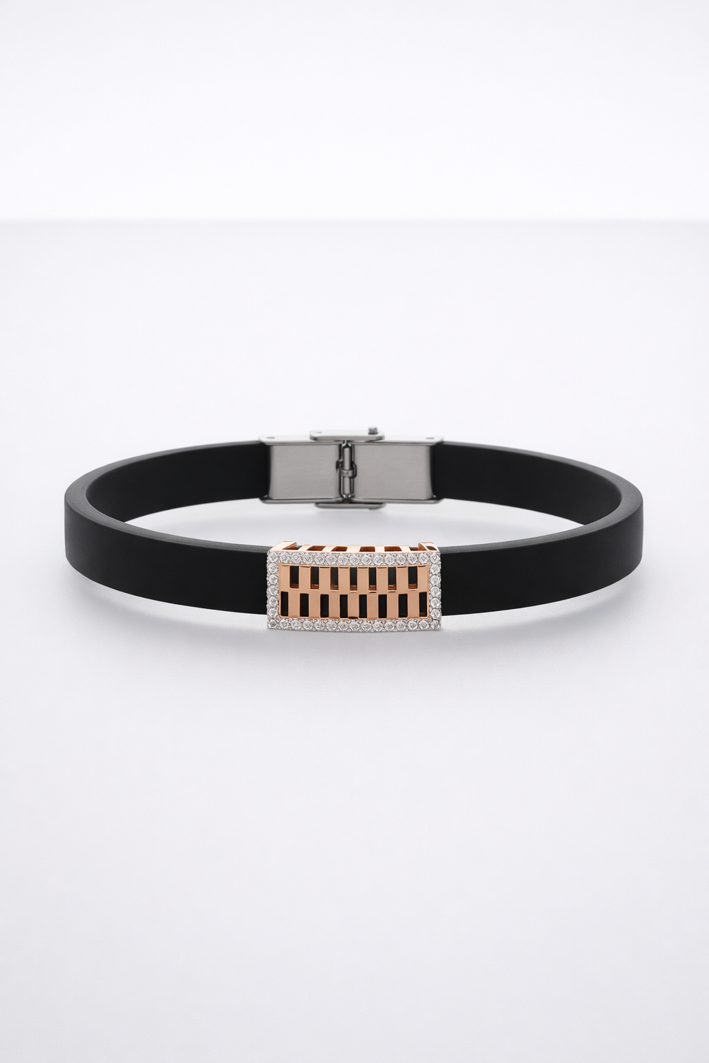 Premium Black Silicon Bracelet with Rose Gold Diamond Rectangular Motif