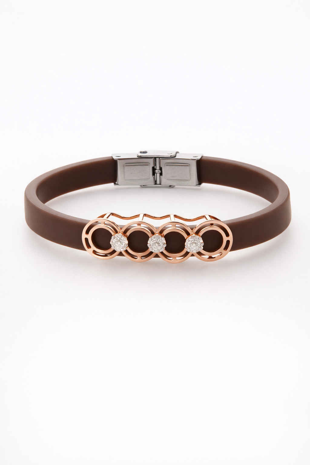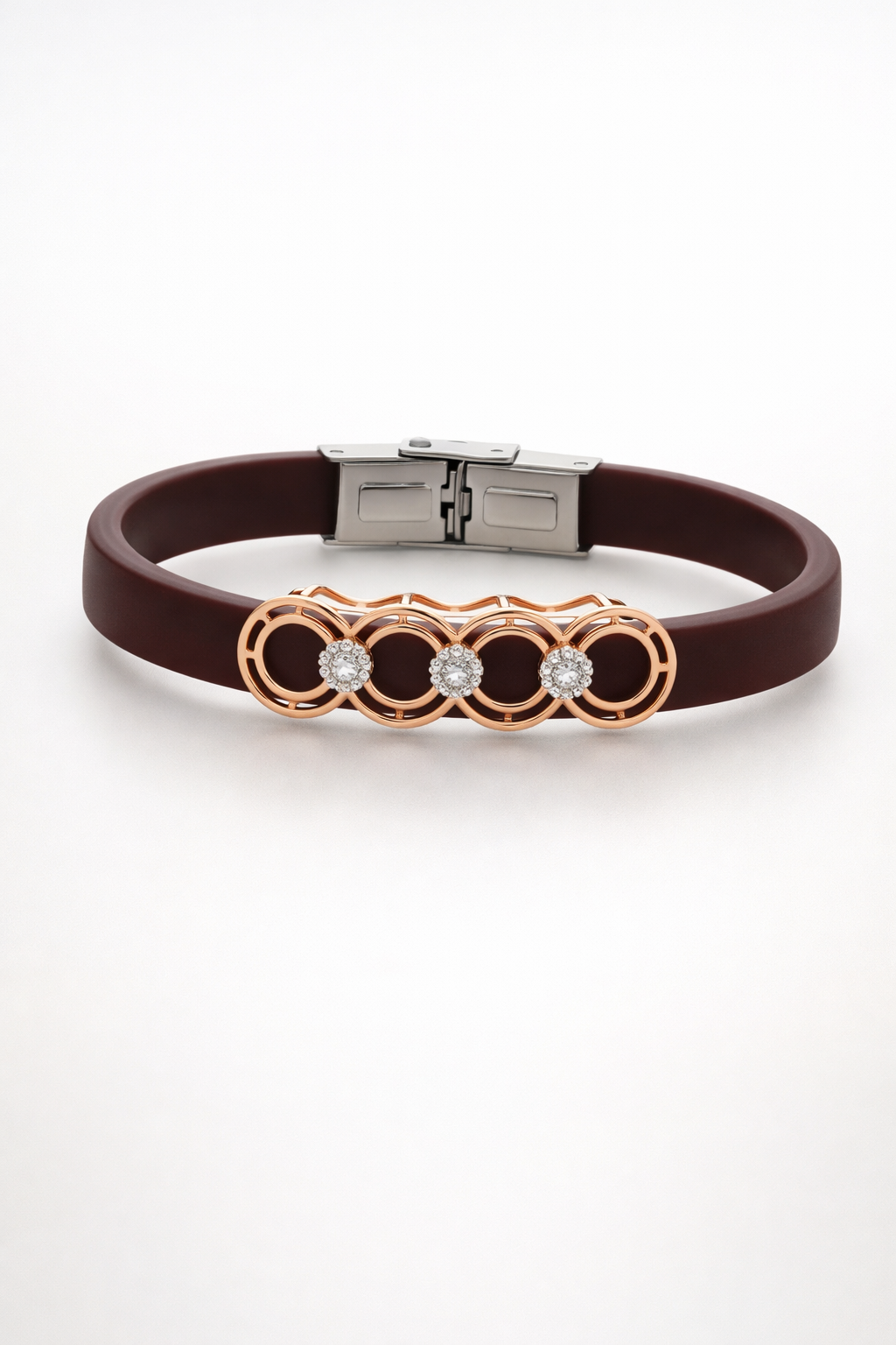 Premium Brown Silicone Designer Bracelet with Rose Gold Circle Diamond Motif