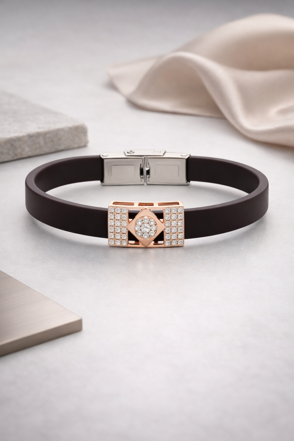 Premium Brown Silicone Designer Bracelet with Rose Gold Diamond Center