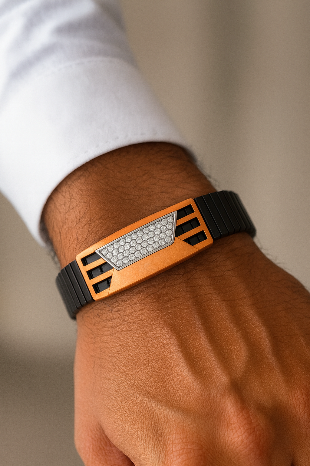 This premium men’s bracelet features a bold black ceramic stretch band paired with a sleek silver designer plate embellished with shimmering CZ stones. The geometric centerpiece gives a sharp, modern, masculine look that stands out effortlessly with any outfit. Its flexible stretch band ensures a secure and comfortable fit for daily wear, while the skin-friendly materials make it ideal for long use. Perfect for men who prefer clean, contemporary styling, this bracelet works great for casual wear, festive looks, parties and gifting.
