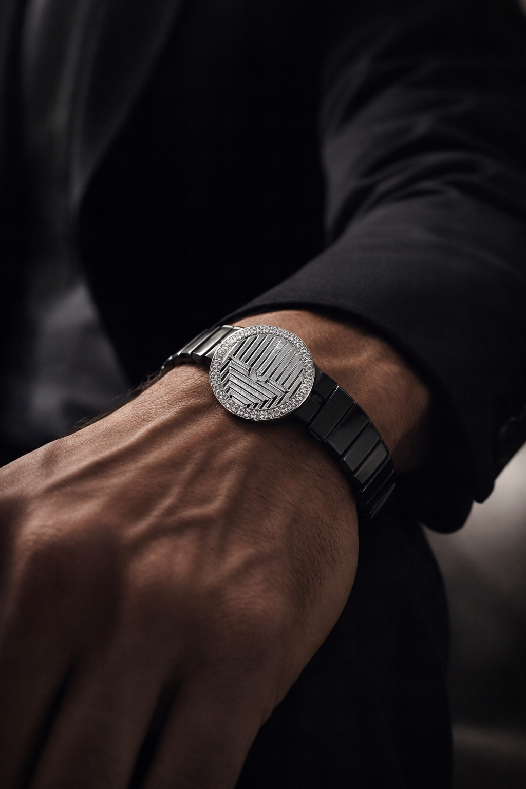 The Regalia Crest Noir Diamond Halo Bracelet represents the pinnacle of contemporary luxury jewelry design. This sophisticated piece features a striking black belt foundation, expertly complemented by a meticulously sculpted rose gold clasp that serves as both functional element and artistic statement. The diamond halo setting creates an enchanting interplay of light and shadow, elevating the bracelet's visual impact with refined elegance. Crafted with precision engineering, the signature luxury finish ensures exceptional durability while maintaining its lustrous appearance. The rose gold clasp demonstrates superior craftsmanship, providing secure fastening without compromising aesthetic appeal. This bracelet seamlessly transitions from formal occasions to elevated everyday wear, making it an invaluable addition to any discerning jewelry collection. The harmonious balance between the bold noir aesthetic and warm rose gold tones creates a versatile piece that complements diverse personal styles. Perfect for those who appreciate understated sophistication with distinctive character, this bracelet embodies timeless elegance and modern design sensibility.
