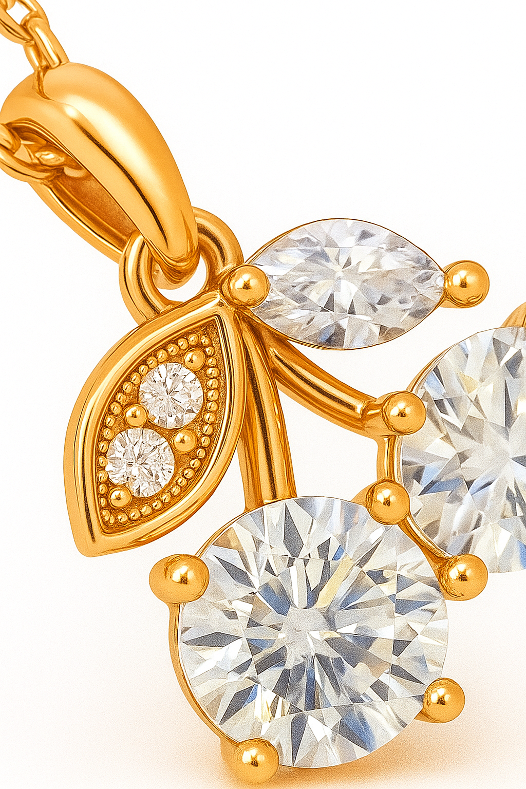 Rose Gold Plated Cherry Pendant Necklace for Women – Sparkling CZ Stone Designer Jewelry