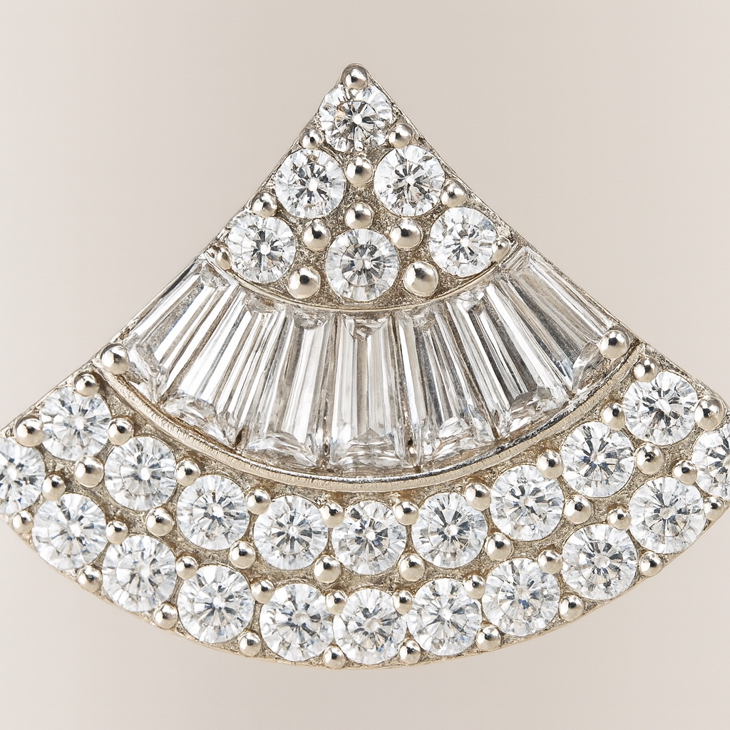 • Fan-shaped design with baguette & round CZ sparkle