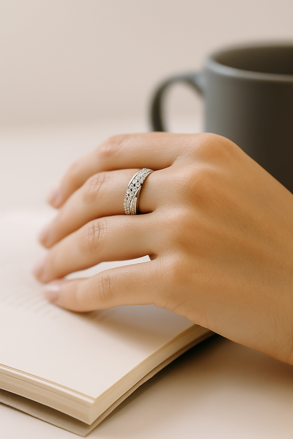 925 Silver Adjustable Dual Design Open Zircon Ring – Modern Minimalist Jewelry for Women
