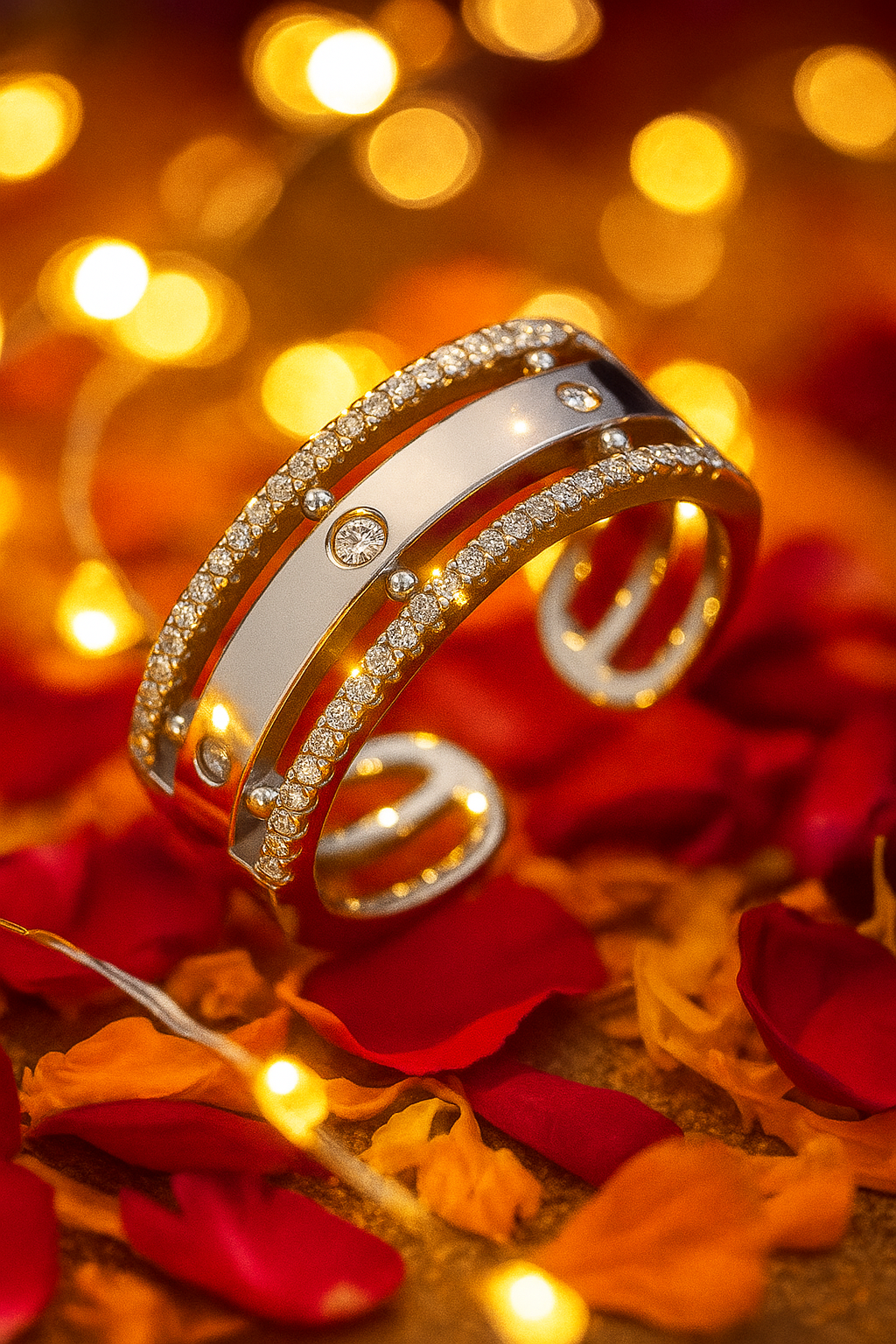 - Dual band open design with sparkling zircon stones